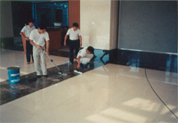 地面石材多为云石类、花岗石类等。有着自然的美丽花纹和色彩的石材,较其他工业化产品更具独特的魅力。它在为设计师提供广阔的设计空间时,迎合追求自然、崇尚绿色环保的时尚,更征服了无数颗喜爱它的心。天然石材较简单的养护是在地面上涂上保护蜡层并抛光固化,隔绝空气、水、尘,防止磨损从而延长使用寿命,更能起到防滑、防静电的作用。